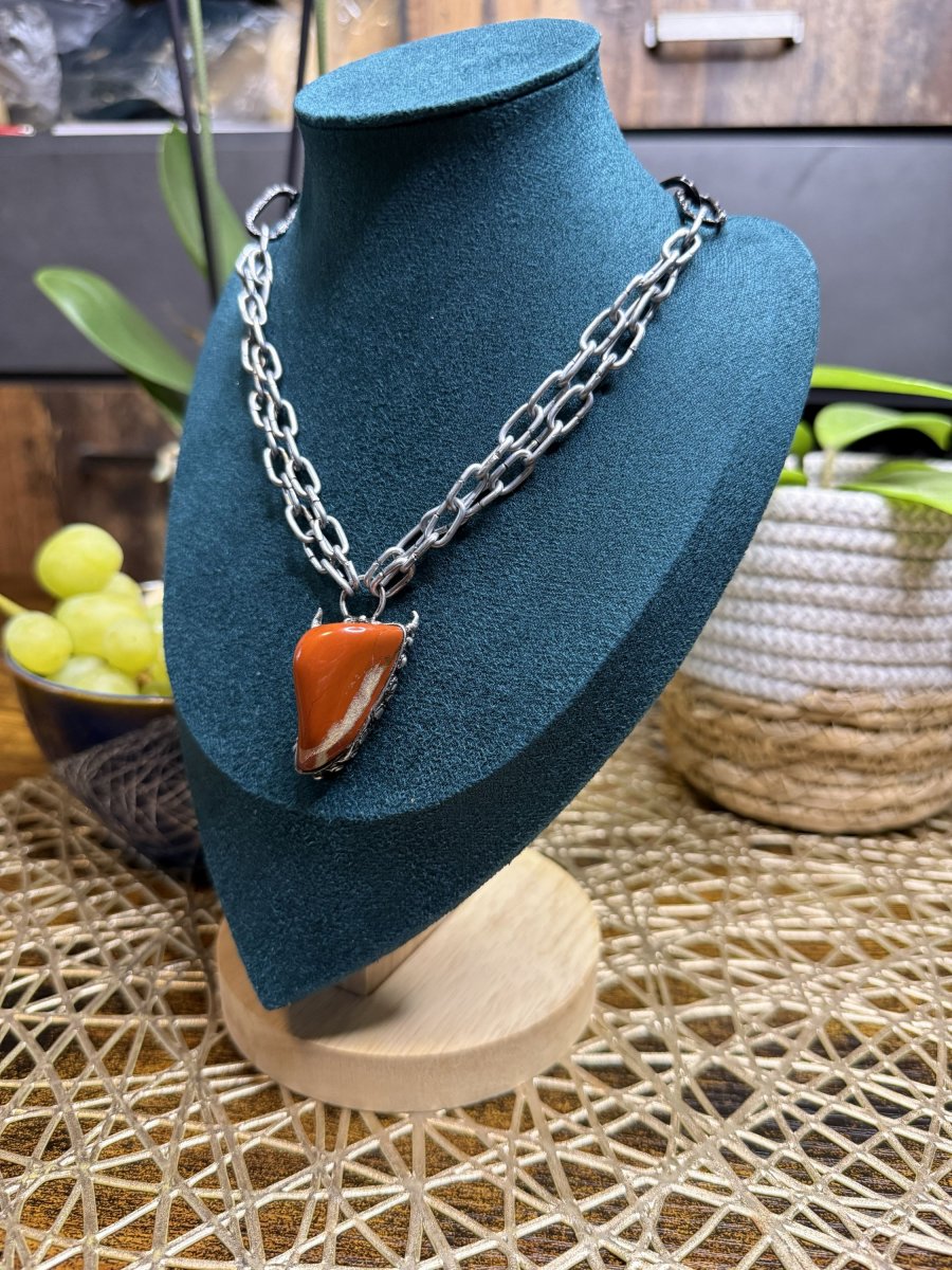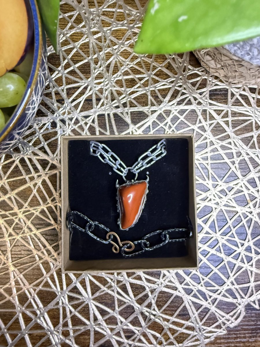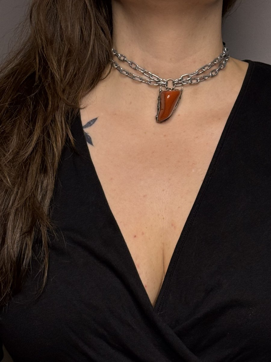 Choker s červeným JASPISEM, ve tvaru chilli papričky s malými růžky.