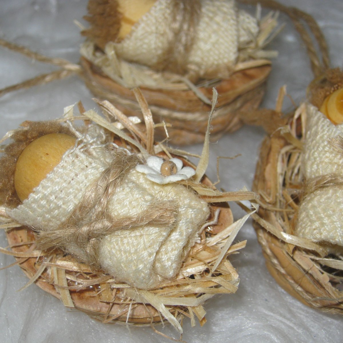 Vánoční ozdoba ze skořápky velkého vlašského ořechu s Ježíškem.
