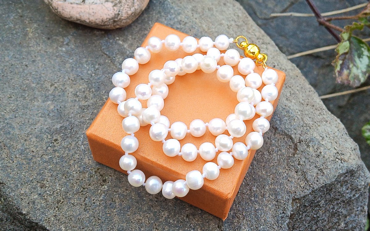 Bílé dokonale lesklé téměř kulaté mořské perličky o průměru cca 6 mm v elegantním něžném náhrdelníku s pozlaceným zapínáním na magnet, který výborně drží. Jednotlivé perly jsou od sebe oddělené uzlíky proti vzájemnému odírání.