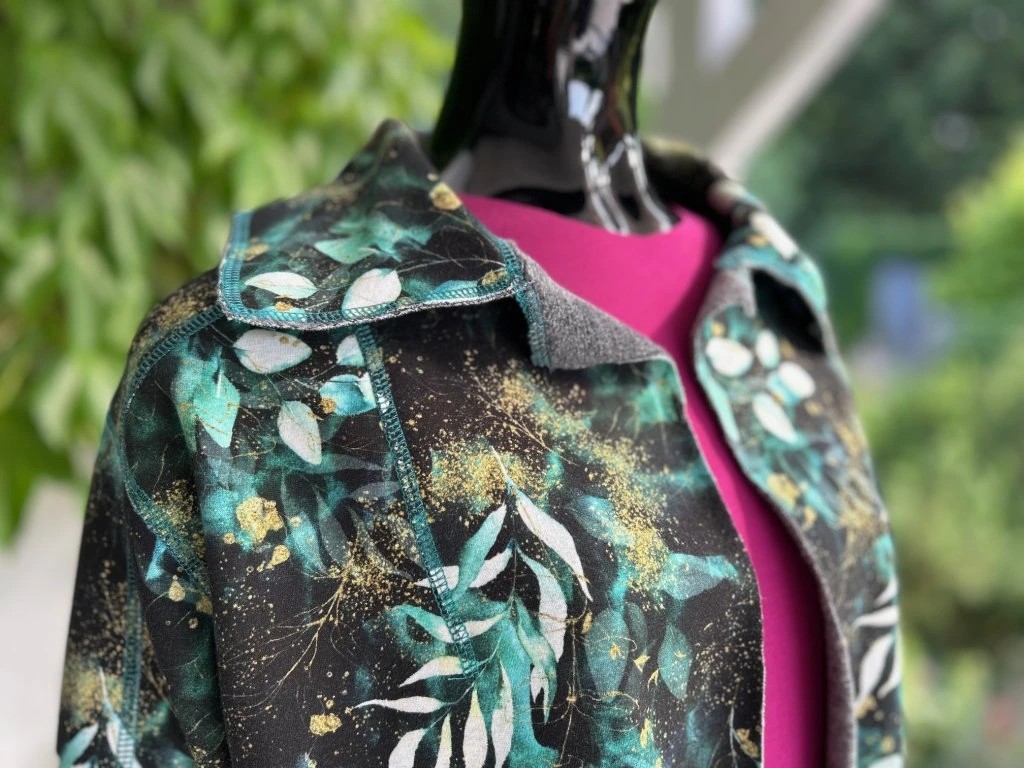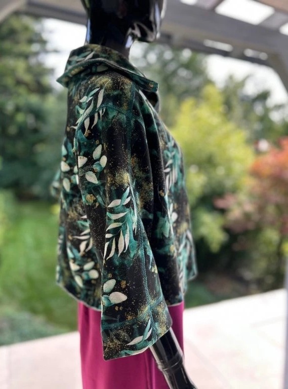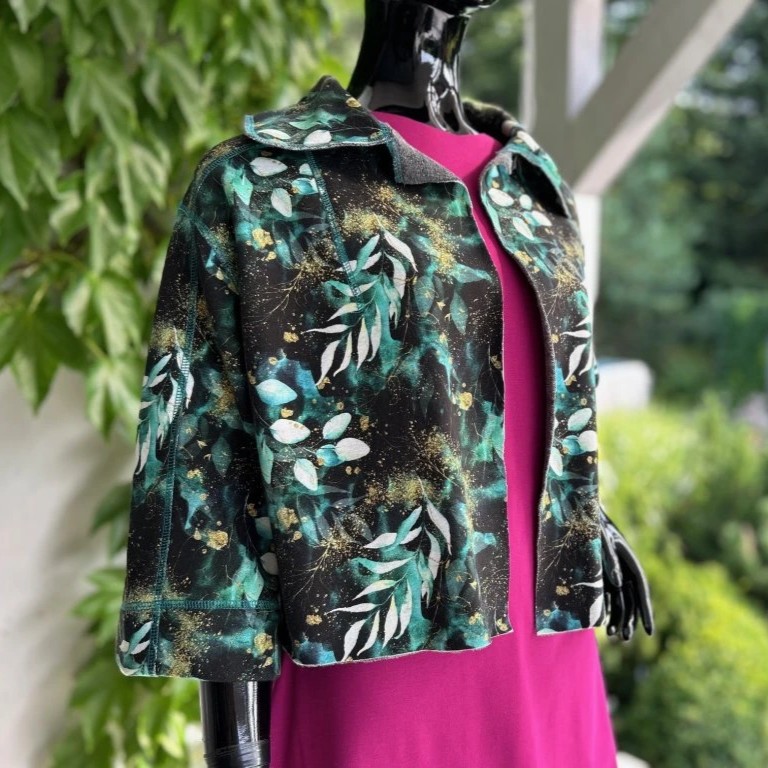 Krátký stylový kabátek, krásných vzorů. Je ušitý z příjemného materiálu alpenfleece, který má na rubové straně vlas a tím pádem plní jak funkci estetickou, tak praktickou. Hodí se kombinovat s jednobarevnými kousky, které zaručeně oživí.