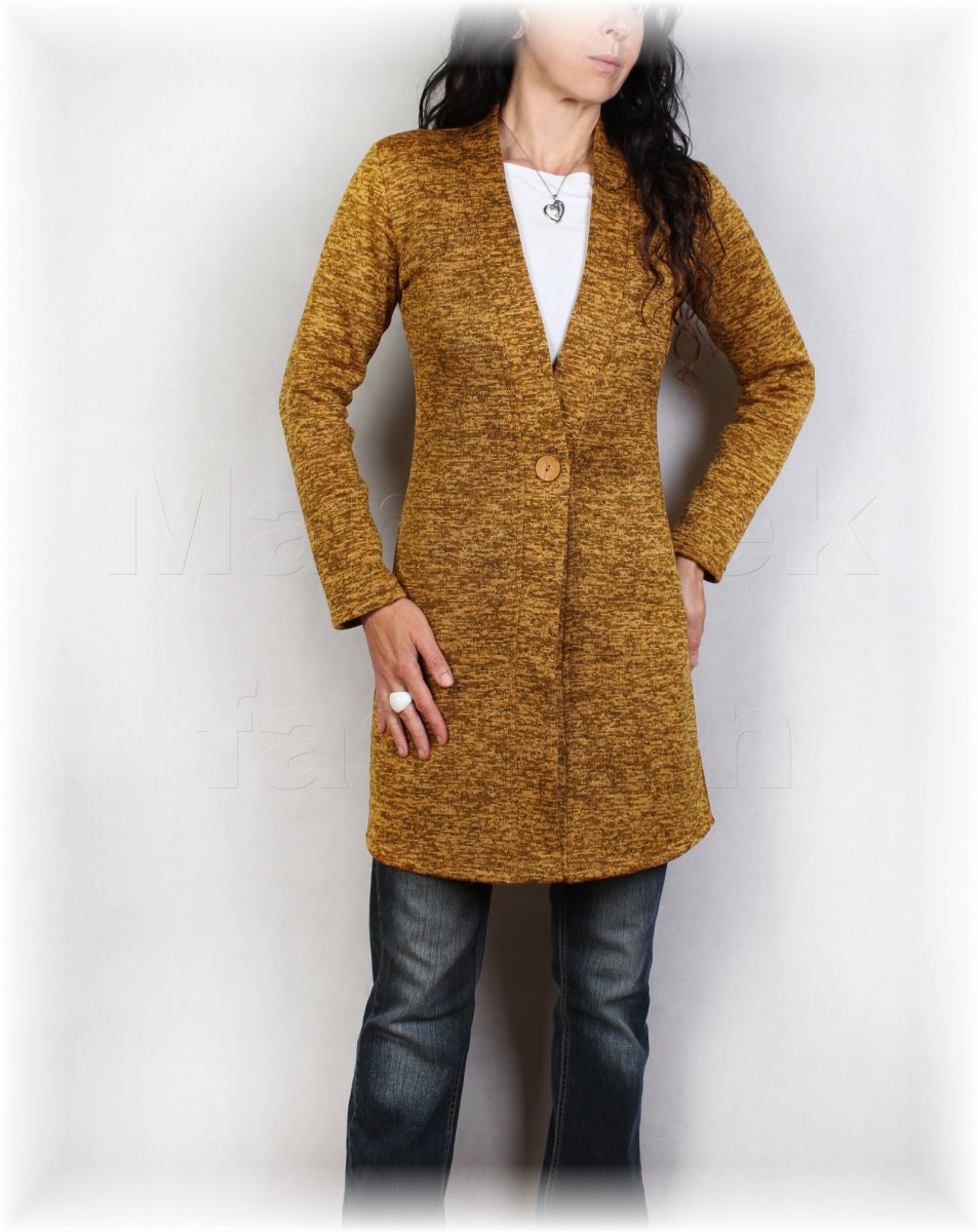 Kabátek na knoflík.Příjemný,měkký a hřejivý materiál.Kabábek můžete nakombinovat barevně do kompletu s hřejivými sukněmi.