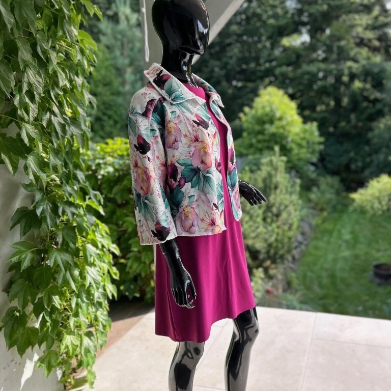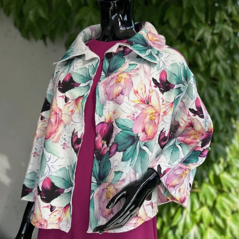 Krátký stylový kabátek, krásných vzorů. Je ušitý z příjemného materiálu alpenfleece, který má na rubové straně vlas a tím pádem plní jak funkci estetickou, tak praktickou. Hodí se kombinovat s jednobarevnými kousky, které zaručeně oživí.