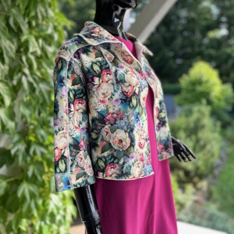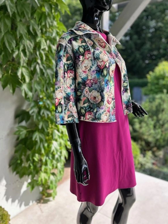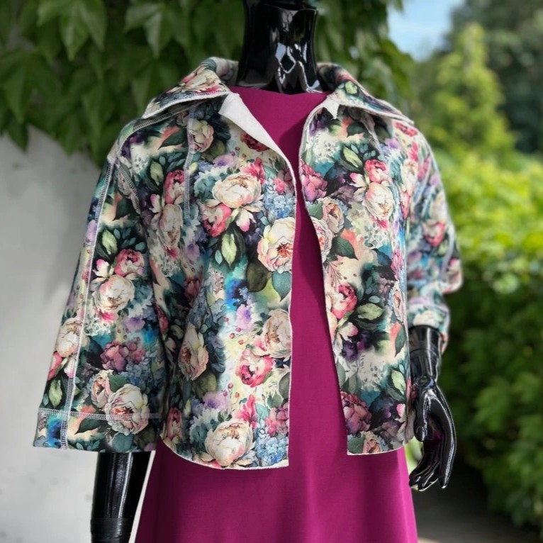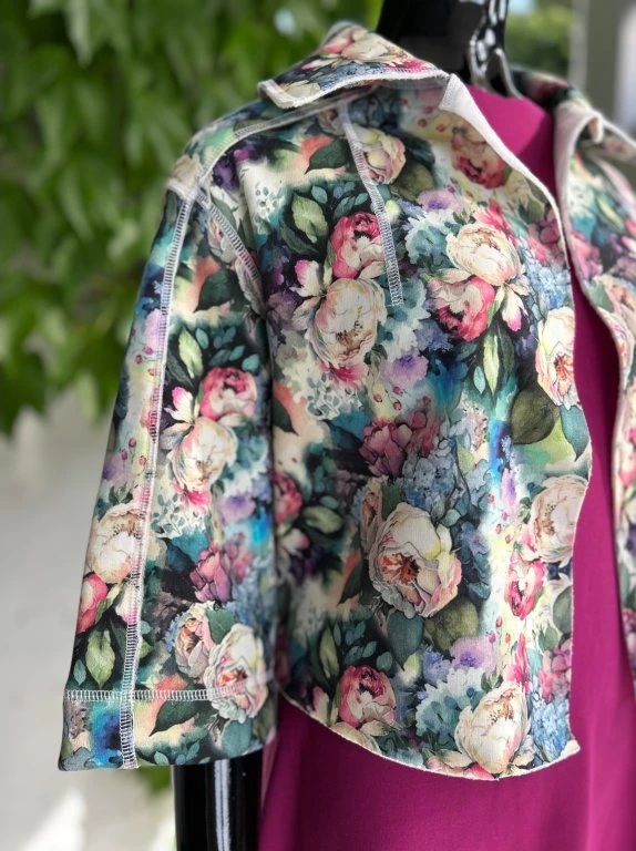 Krátký stylový kabátek, krásných vzorů. Je ušitý z příjemného materiálu alpenfleece, který má na rubové straně vlas a tím pádem plní jak funkci estetickou, tak praktickou. Hodí se kombinovat s jednobarevnými kousky, které zaručeně oživí.