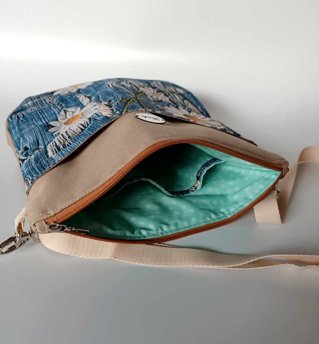Uvnitř kabelky jsou 2 nakládané kapsy, bavlněná podšívka.