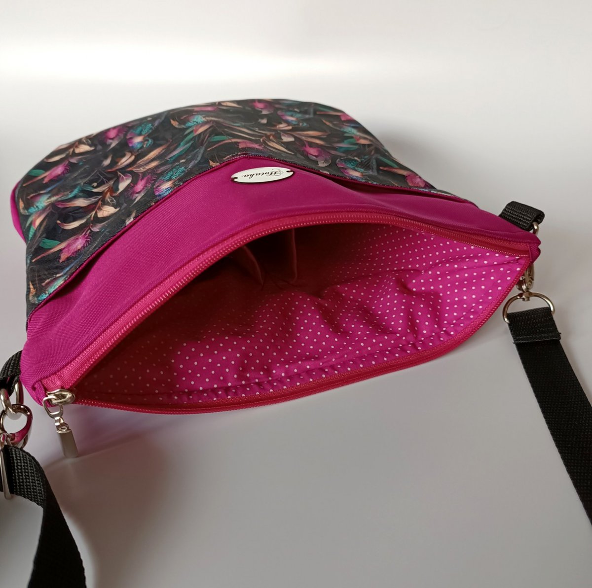 Uvnitř kabelky jsou 2 nakládané kapsy, bavlněná podšívka.