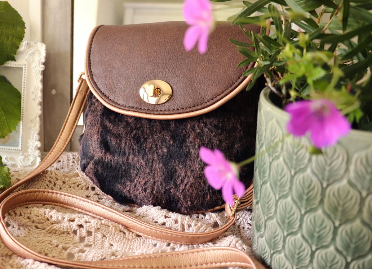 Použitá, vysoce kvalitní koženka v přírodní hnědé barvě je kombinovaná s umělou kožešinkou.