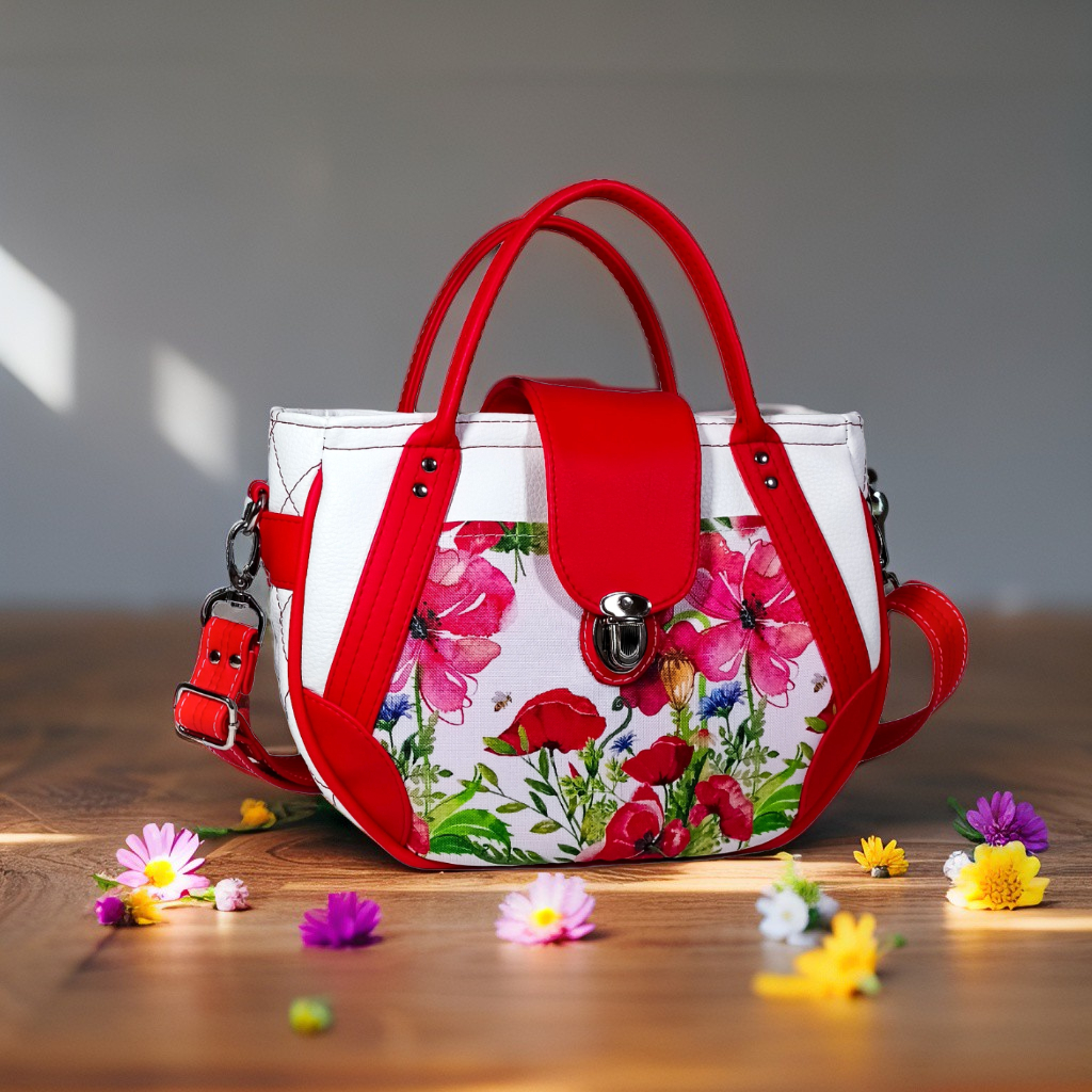 Kabelka má elegantní vzhled a bude vypadat skvěle k jakémukoli oblečení. Díky střední velikosti je kabelka ideální pro každodenní nošení a lze ji pohodlně nosit s uchy v ruce nebo s nastavitelným popruhem přes rameno nebo i křížem přes tělo. Díky barevnému provedení syntetické látky se vzorem vlčích máků, doplní letní šaty, kostýmek nebo i jarní kabátky.