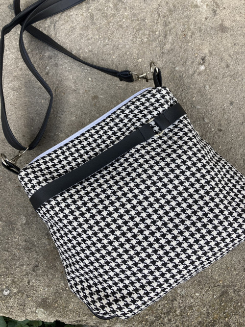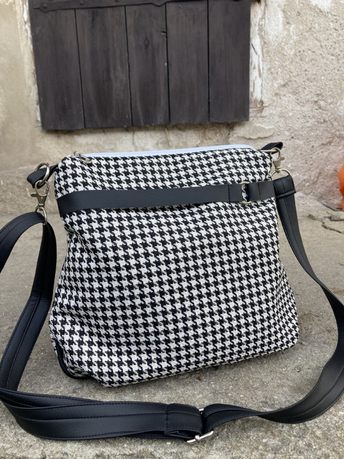 Tato stylová kabelka vás zaujme promyšleným designem a praktickým provedením. Ušitá z potahové látky s vzorováním pepito a doplněná černou koženkou.