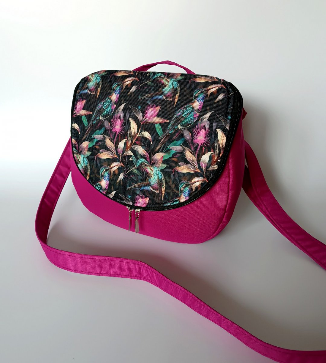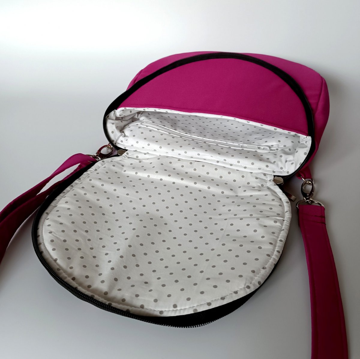 Kabelka je vyztužená pěnou. Uvnitř bavlněná podšívka s kapsičkou na zip.