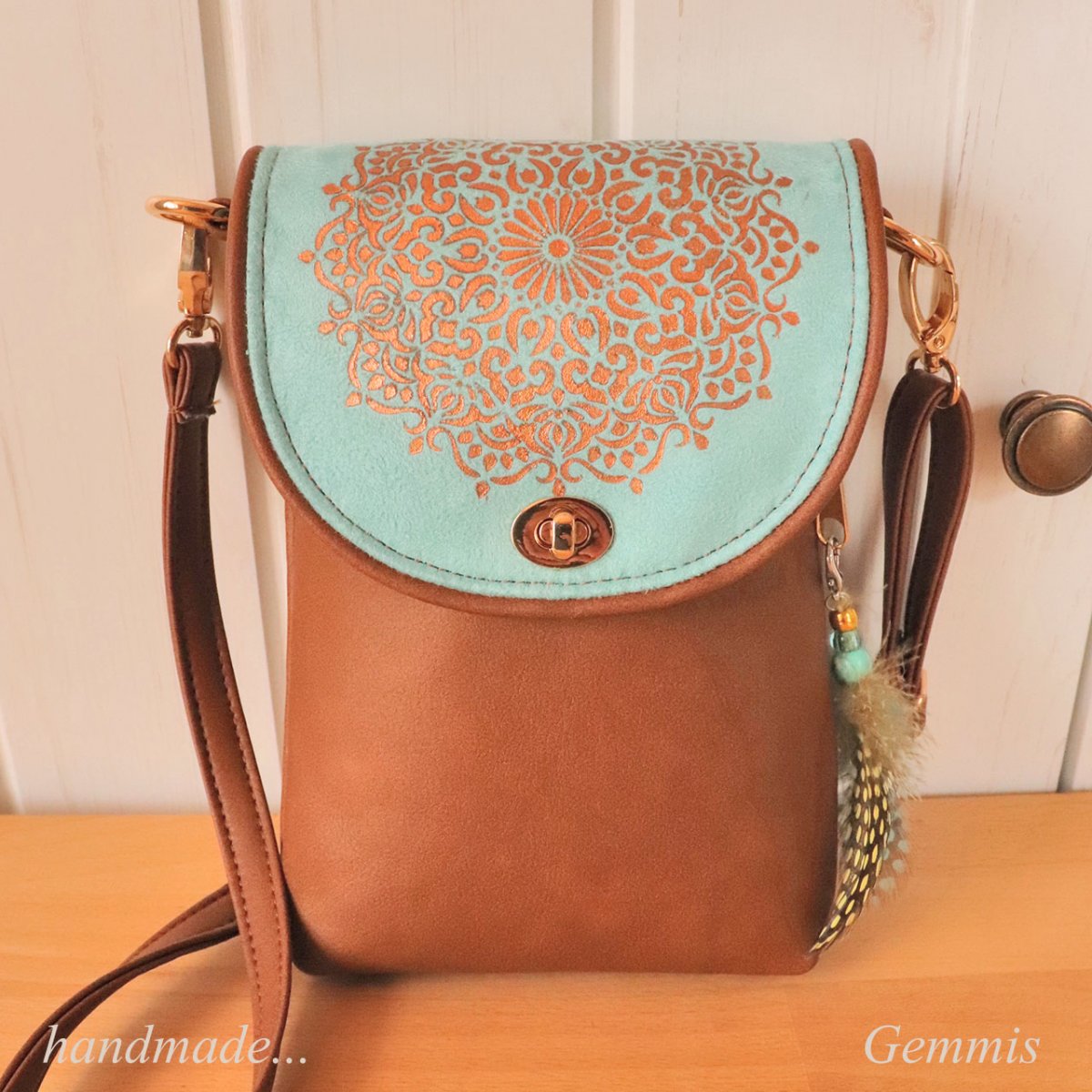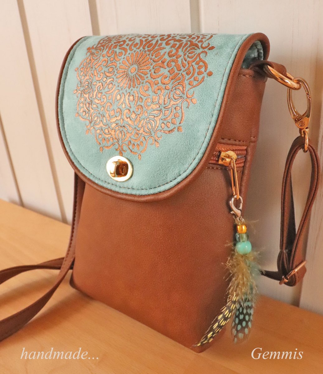 Kabelku doplňuje ručně vyrobený přívěsek na karabinku, který lze sundat.