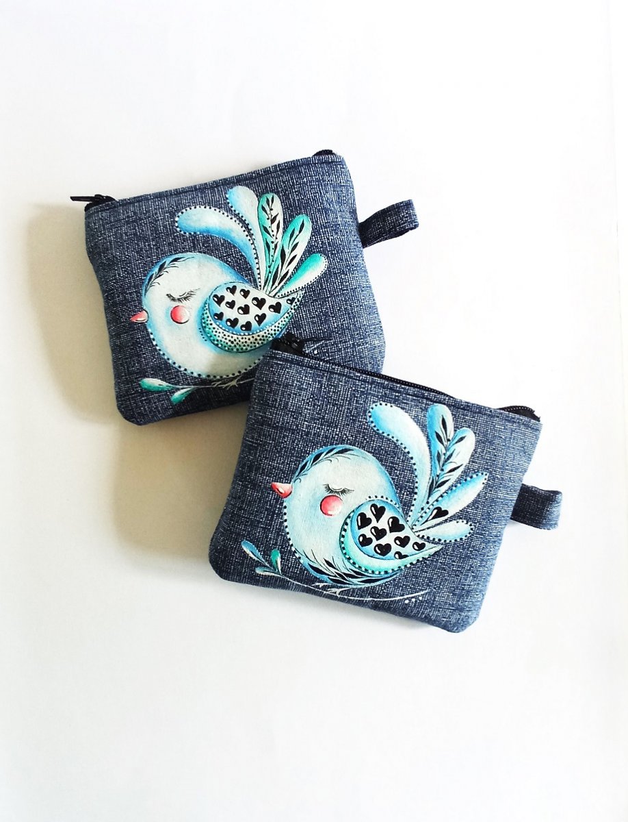 ptáček je ručně malovaný barvou na textil a zafixovaný teplem,