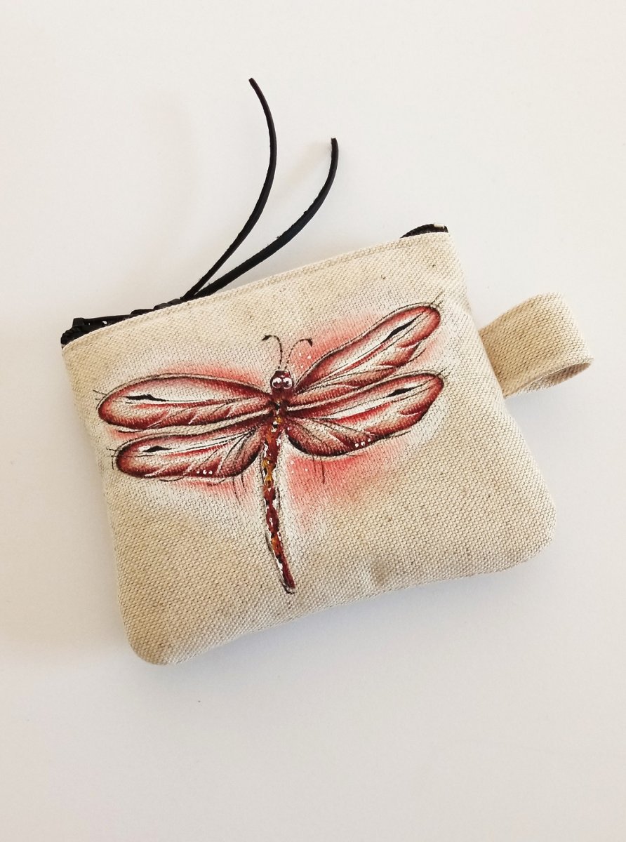 vážka je ručně malovaná barvou na textil a zafixovaná teplem,prát v ruce ve vlažné vodě,něždímat a nesušit v sušičce a žehlit přes pečící papír,
