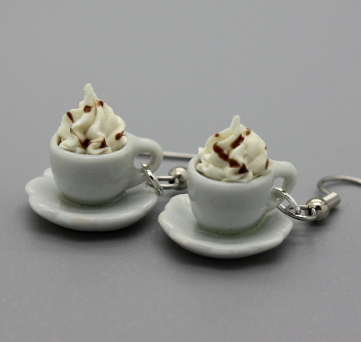 nádobí je porcelánové, náušničky jsou lehké zavěšeno na stříbrných bižuterních afroháčcích,