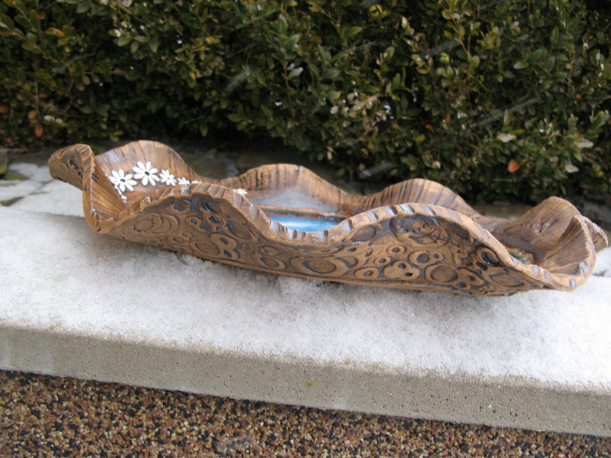 Zahradní keramické pítko - velká mísa s ptáčkem