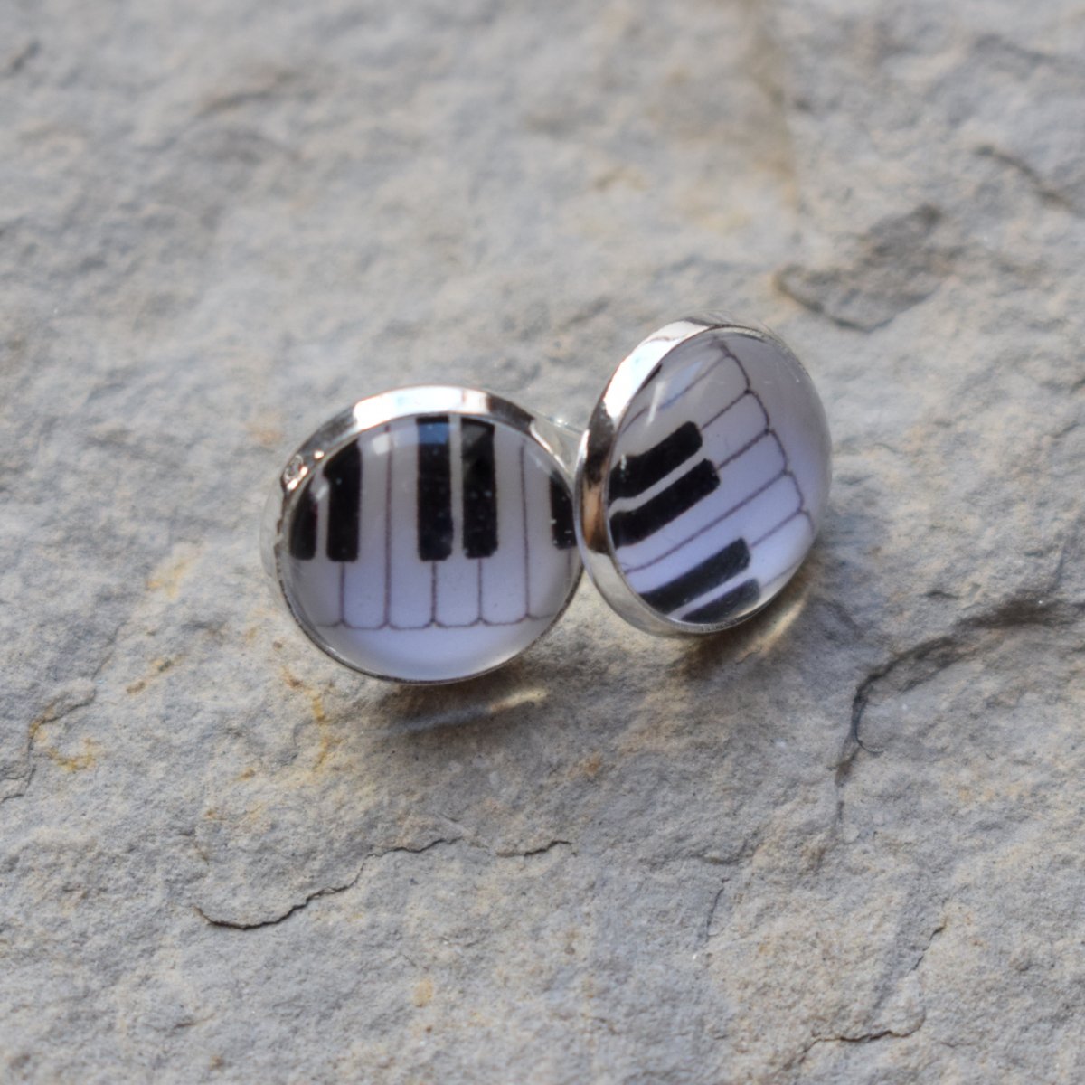 Náušnice jsou vyrobeny ze skleněného kabošonu(12mm) vlepeného do lůžka v barvě stříbra.