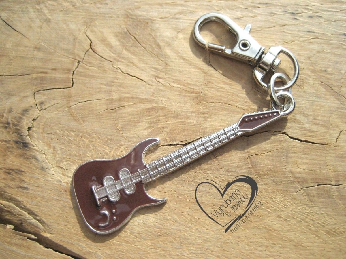 Klíčenka kovový přívěsek elektrická kytara, velikost kytary 6,2 x 1,9 cm, přívěsky jsou s kroužkem nebo karabinkou