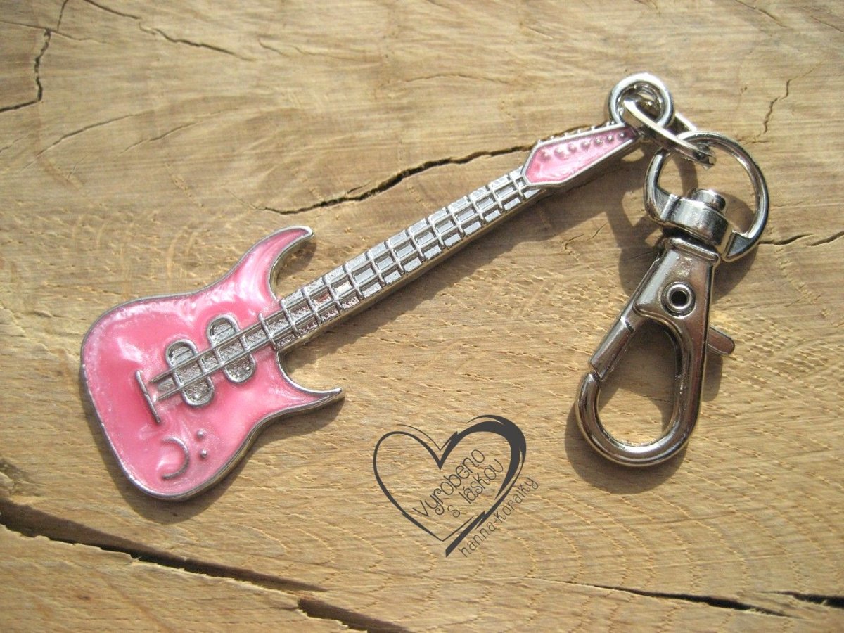 Klíčenka kovový přívěsek elektrická kytara, velikost kytary 6,2 x 1,9 cm, přívěsky jsou s kroužkem nebo karabinkou