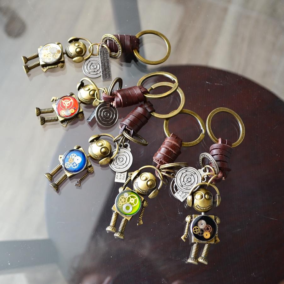 Originální veselá klíčenka ROBOT se sluchátky a pestrým bříškem, kde jsme použili součástky ze starých hodinek.