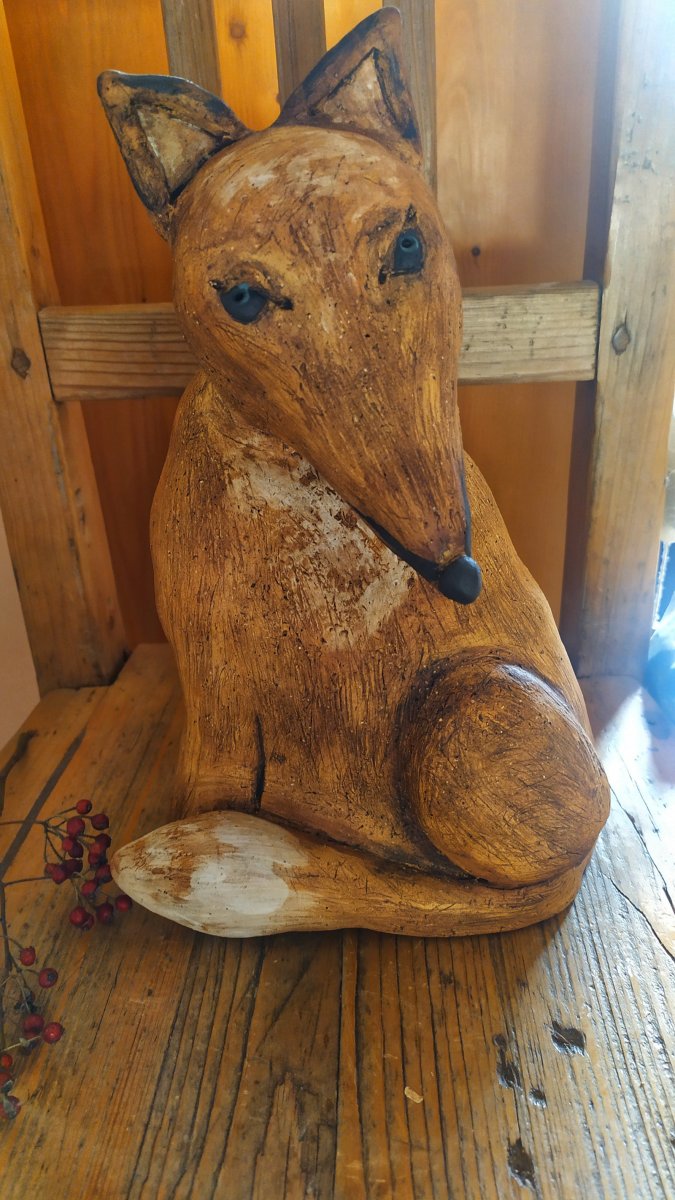Keramická liška, výška 27 cmx18.