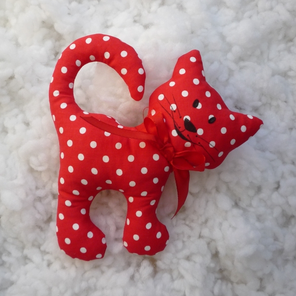 Ušitá z bavlněného plátna, plněná dutým vláknem (100% PES), zdobená mašlí.