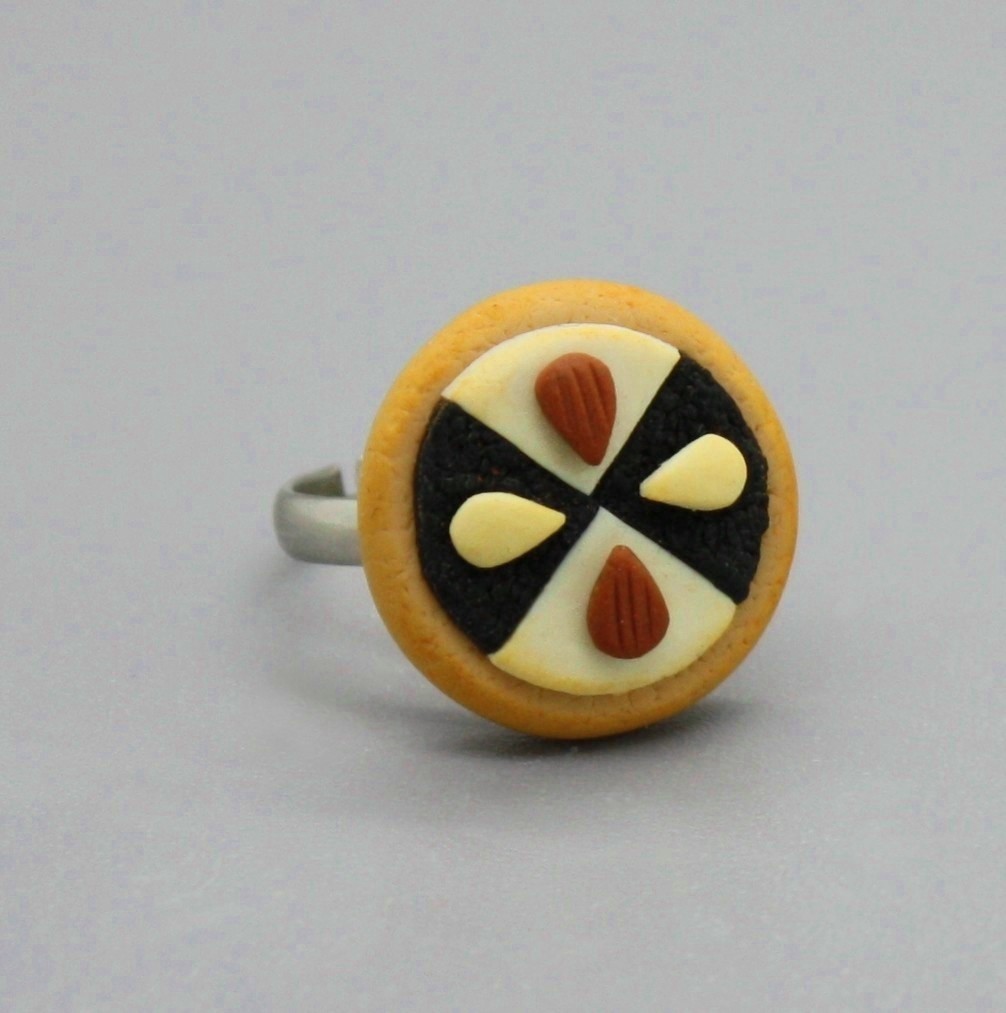 ručně modelovaný šperk z polymerové hmoty, bižuterní prstýnek ve stříbrné barvě s regulací velikosti