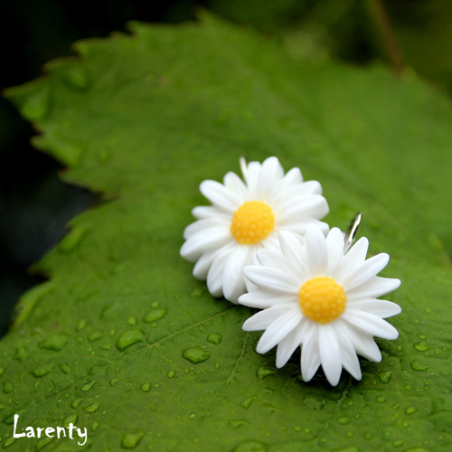 Elegantní naušnice v podobě kopretin. Zavěšení na uzaviratelný háček.
