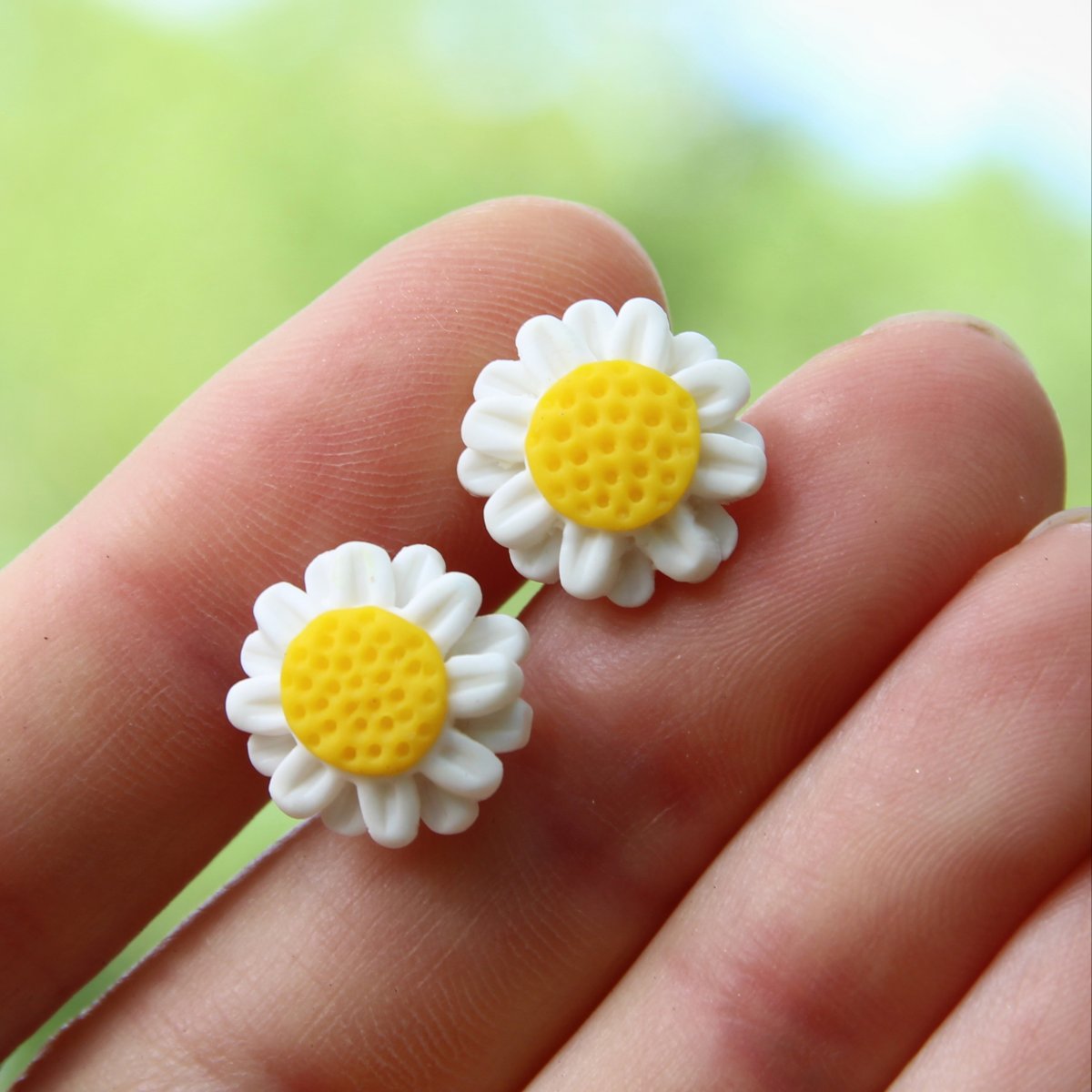 Náušnice s květinkami z polymerové hmoty (cca 14mm), gumové zarážky.