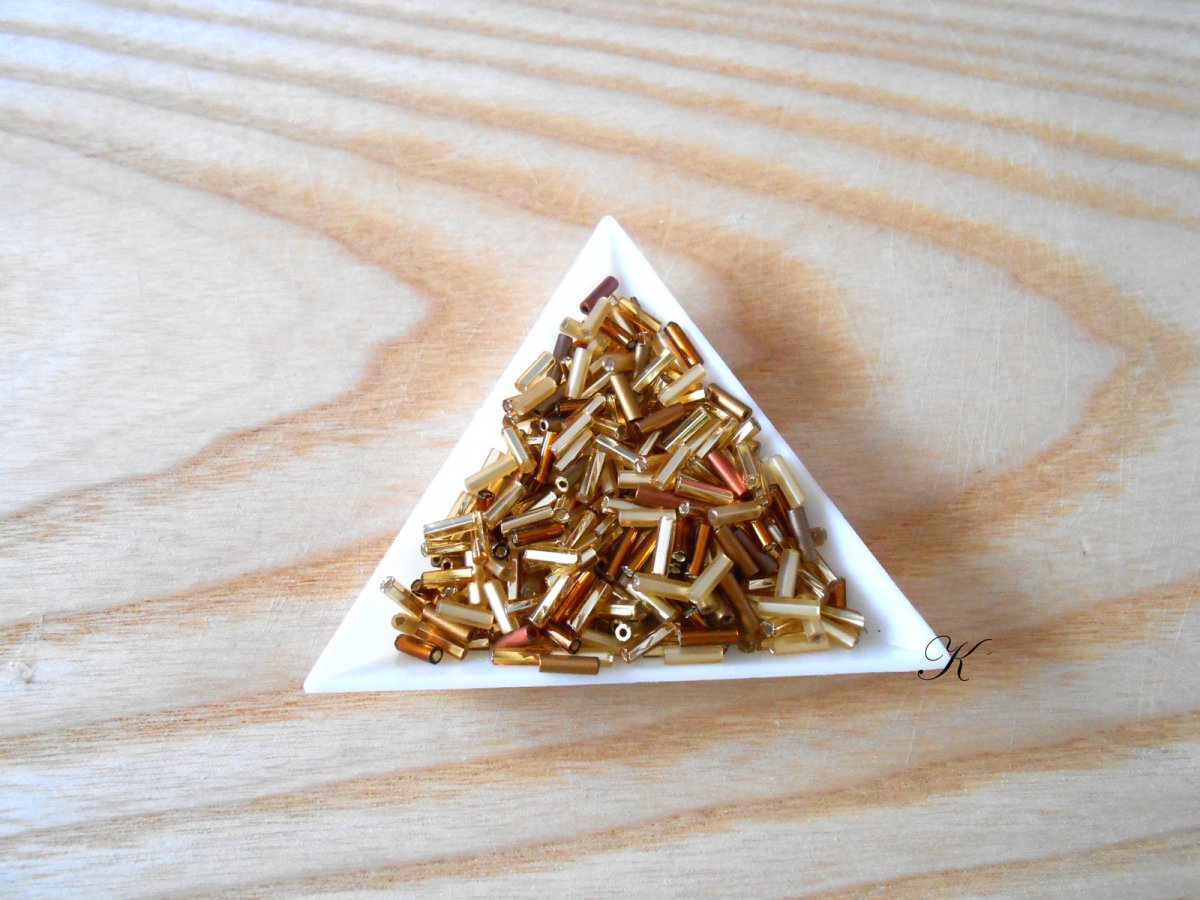 Skleněné korálky rokajl o velikosti cca 2 mm x 7 mm.