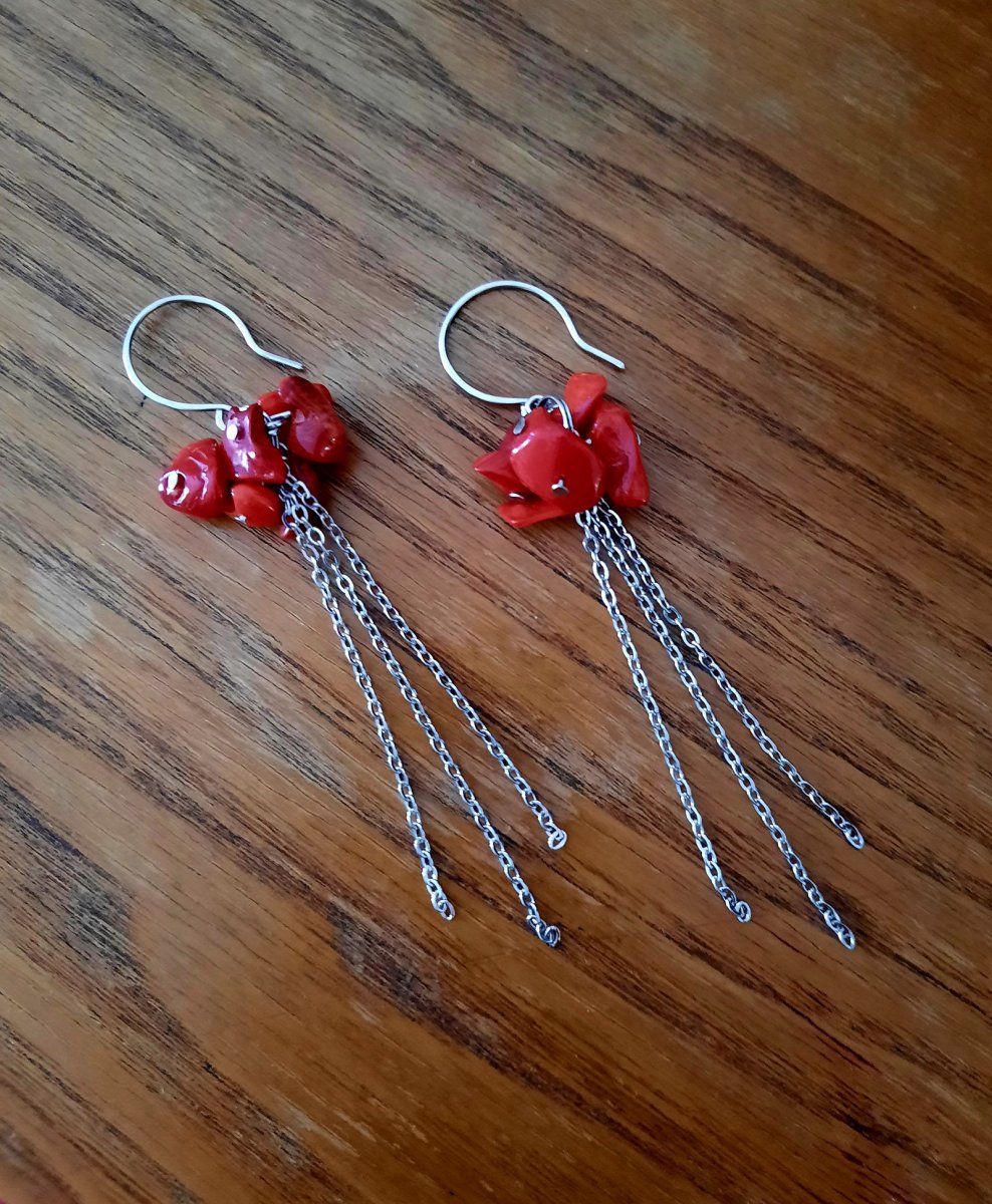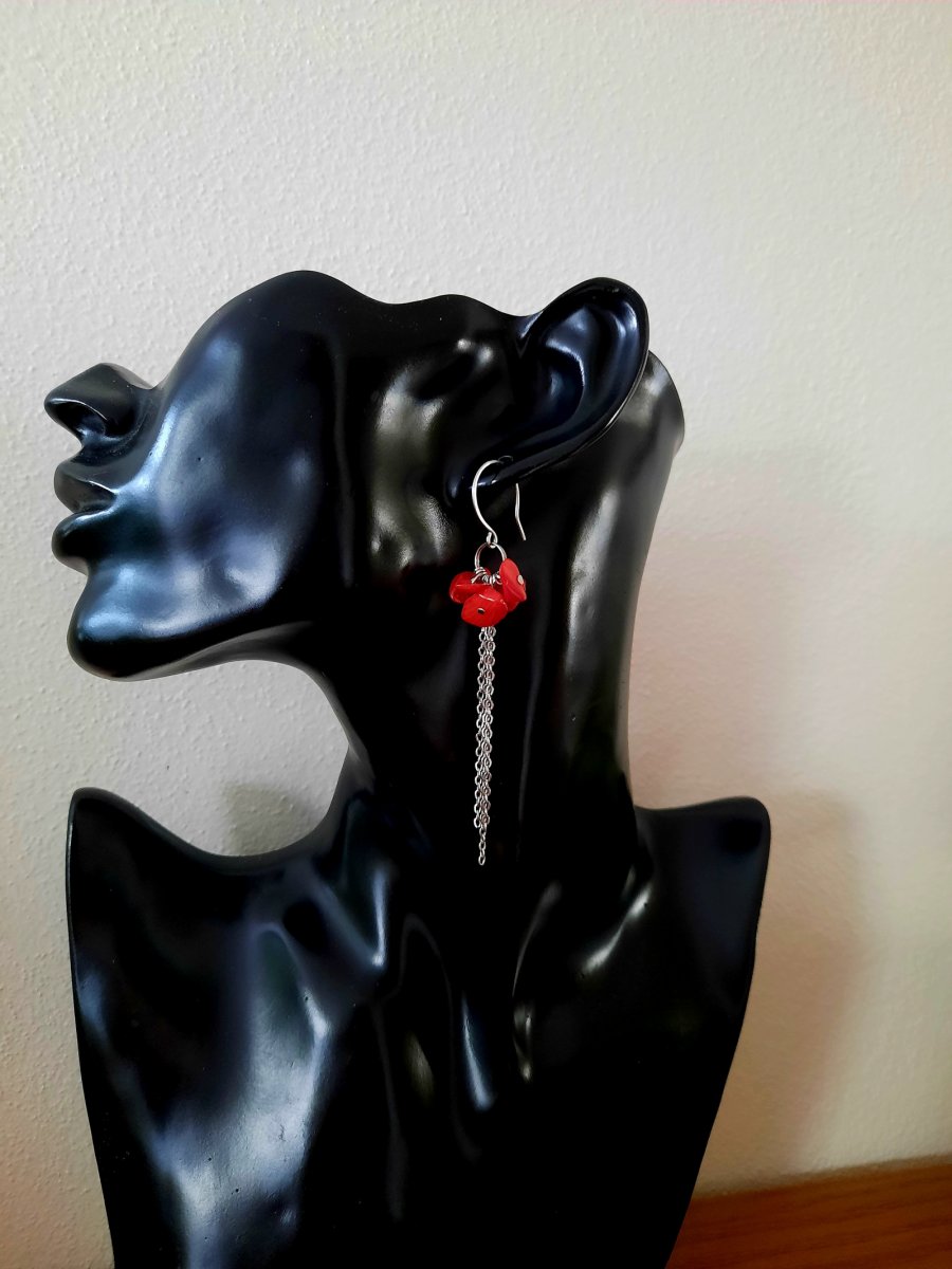 Elegantní náušnice vyrobené z chirurgické oceli ozdobené červeným mořským korálem.