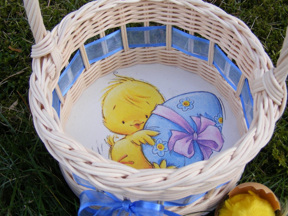 Košíček pletený z přírodního pedigu,dýnko upraveno decoupage technikou.