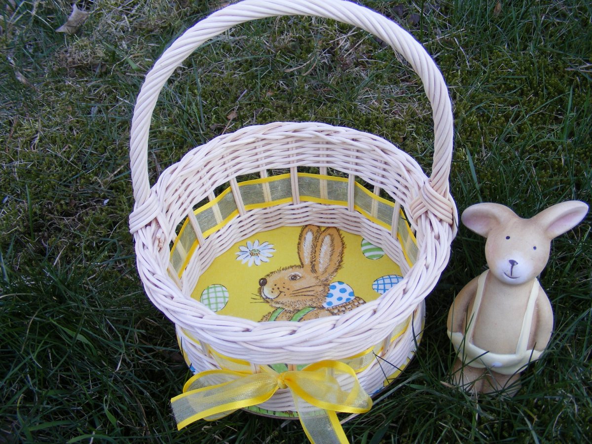 Průměr košíčku 17 cm,výška asi 22 cm.Košíček pletený z přírodního pedigu,dýnko upraveno decoupage technikou.