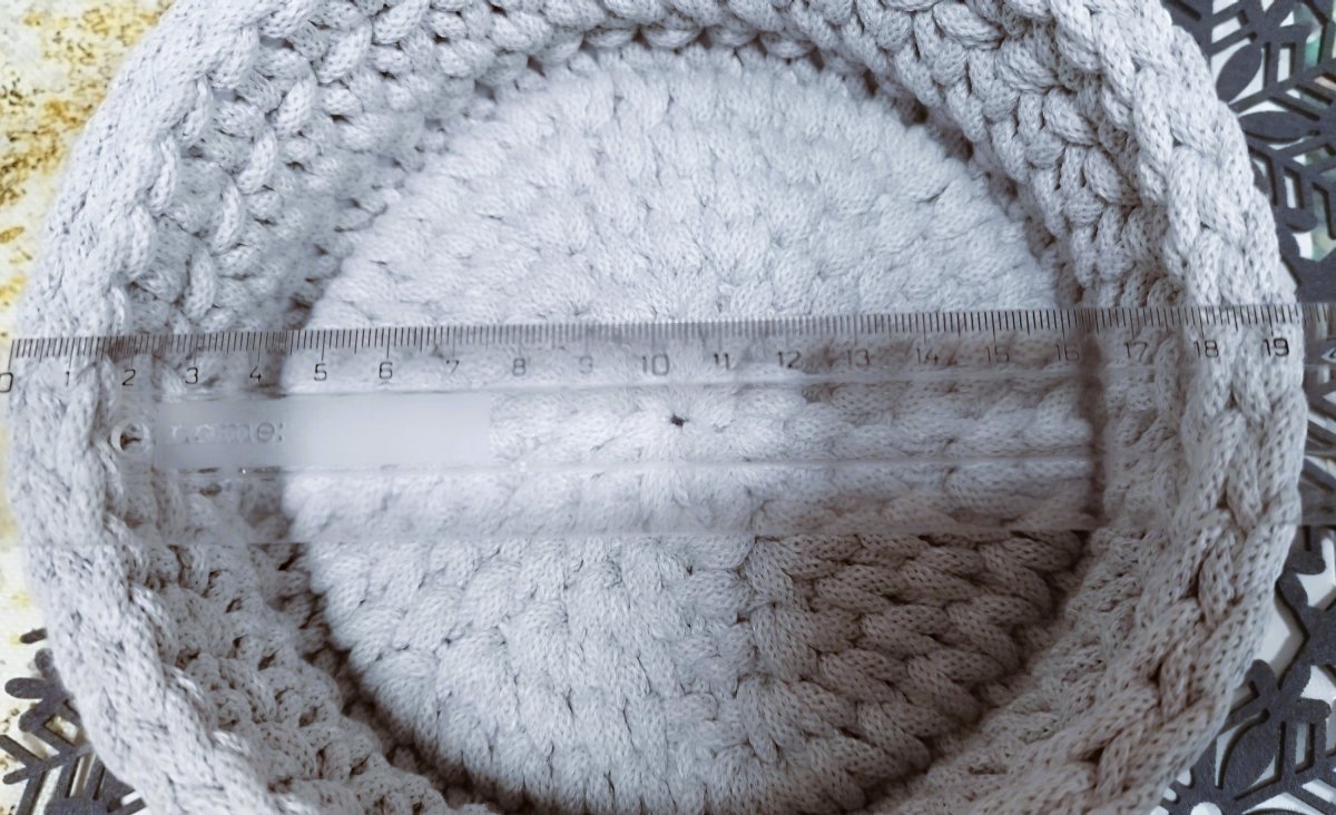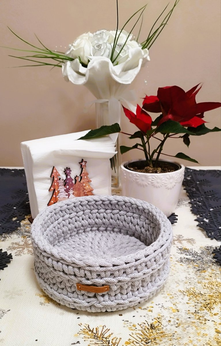 Košík ručně uháčkovaný z pevné bavlněné příze silné 5 mm.