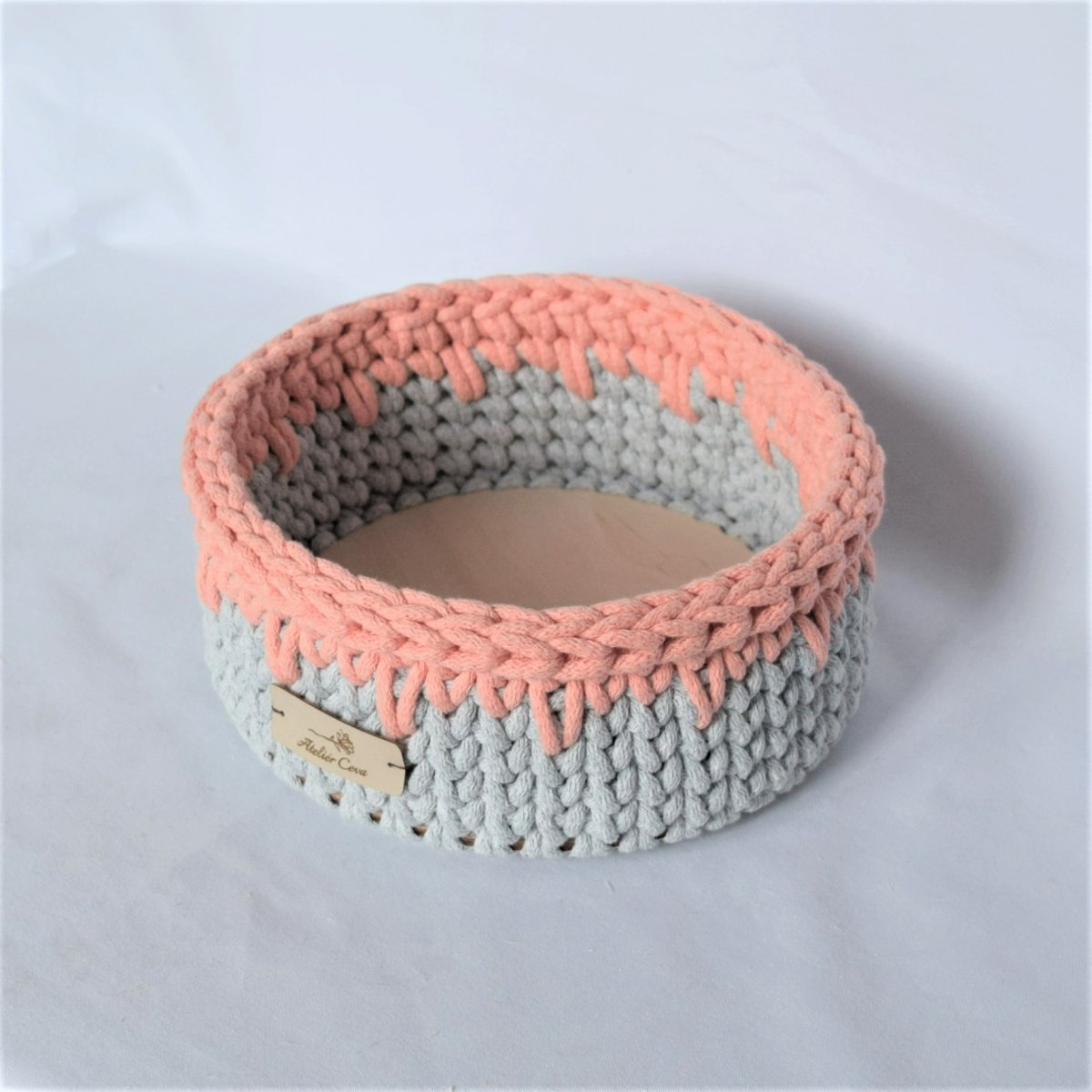 Košík kulatý - šedá malange s lososovou