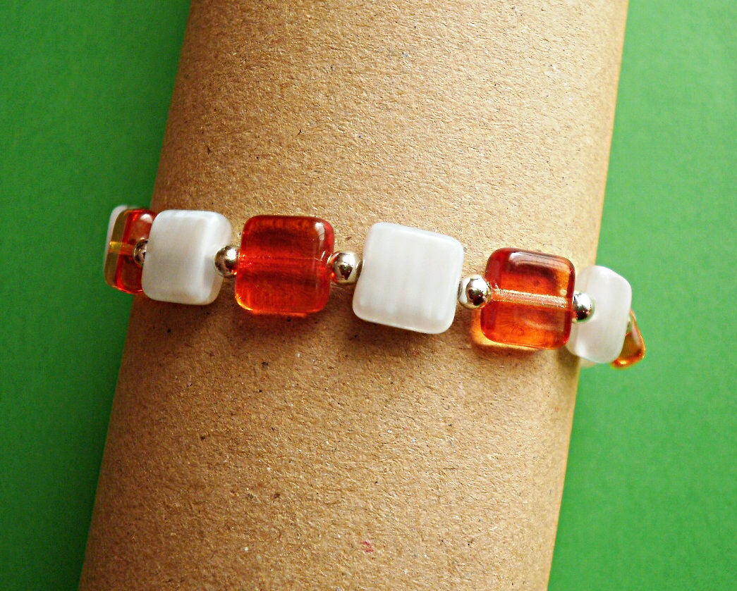 náramek na pružence, šedé a červené korálky ve tvaru kostiček a stříbrné mezidílky ve tvaru kuliček, délka je 19 cm průměr je 6 cm, je vhodný na každou ruku, rychlá manipulace - navlékne se a jde se, můžu vytvořit jakoukoli velikost, k dispozici jsou i náušnice