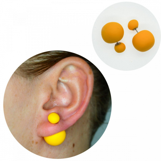 Náušnice s efektem falešného roztahováku, které je možné nosit malým nebo velkým koncem dopředu.