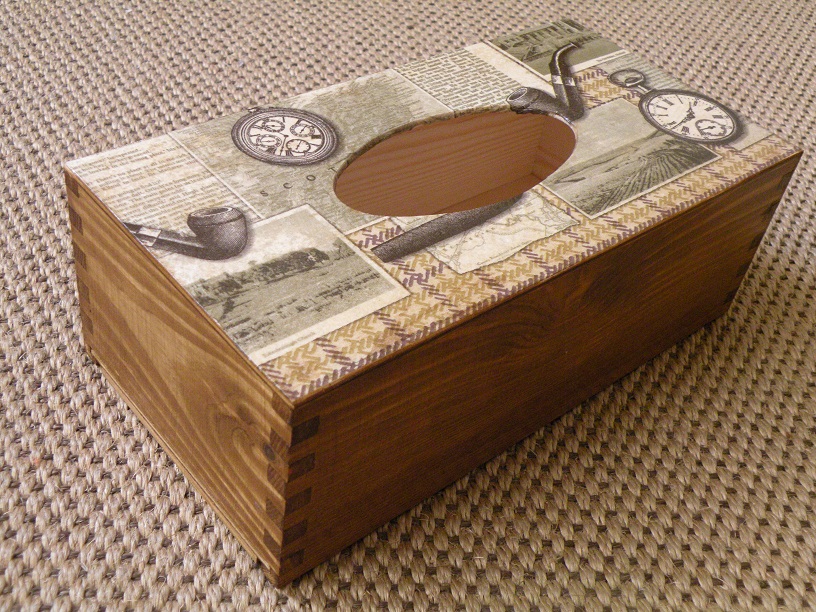 Krabička, box na papírové kapesníky se pěknou kresbou dřeva mořený v barvě ořechu o velikosti 25,5x13,5x8,5cm.