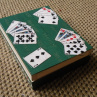 Dřevěná krabička na karty (žolíkové,kanastové) dekorována motivy karet a karetních symbolů, které jsou zvýrazněny 3D lakem