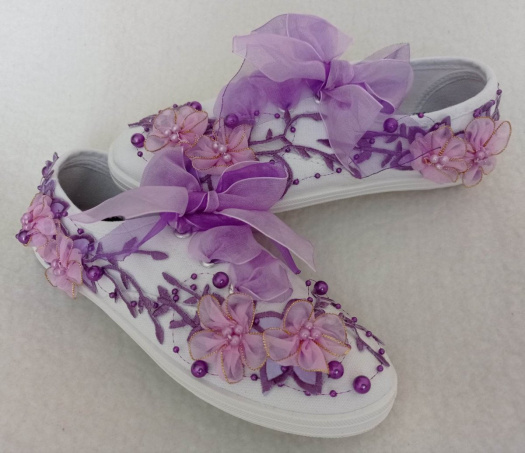 Svatební boty, obuv, kecky, Zdobené krajkou, vyšívanou drobnými perličkami, korálkami a růžičkami, délka stélky vel. 35 - 22,1 cm, 36 - 22,9 cm, 37 - 23,4 cm, 38 - 24,2 cm, 39 - 24,8 cm, 40 - 25,5 cm, 41 - 26,3 cm, 42 - 26,9 cm, 43 - 27,4 cm. Vhodné k sukni -