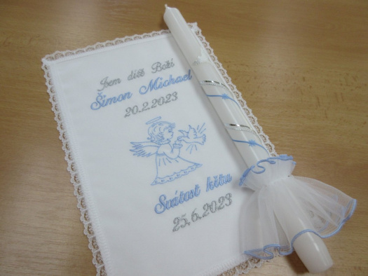 Ozdoba na svíčku tyl- vždy bílý, možno našít krajku jako na roušce nebo olemovat barevnou nití.
