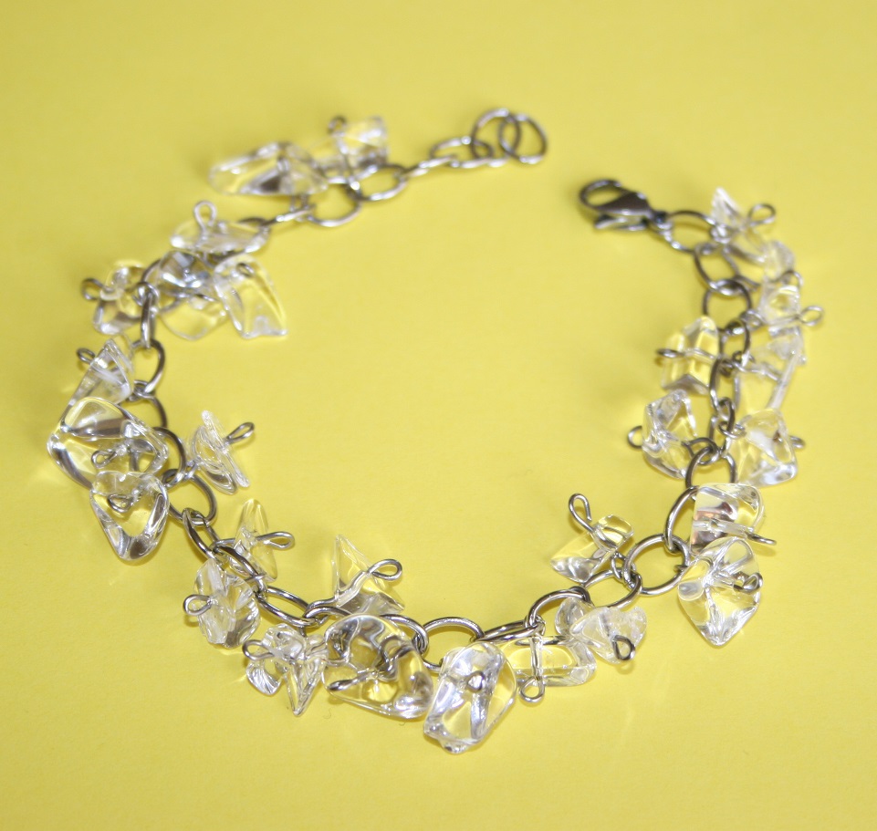 Náramek je vyroben z chirurgické oceli 316L, ozdobený krásně čirými kamínky horského křišťálu kvality AA.