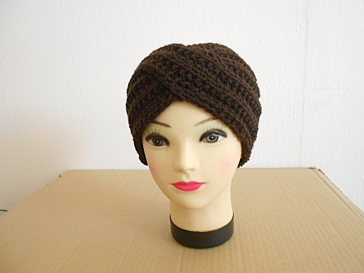 Ručně pletená, teplá, hnědá křížená čelenka 30% vlna, 70% akryl, velmi pružný vzor. Obvod hlavy 55-60 cm, šířka 11,5 cm. Doporučuji jemné praní a sušit volně položené.