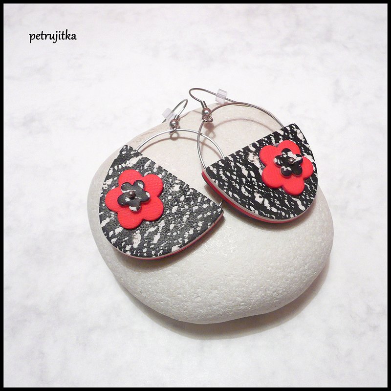 Originální náušnice z polymerové hmoty. Barva je černá, bílá a červená.
