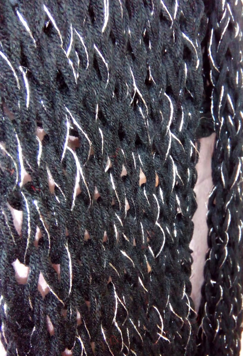 Upleteno z akrylové příze a lurexového vlákna. Lze 2x omotat kolem krku.