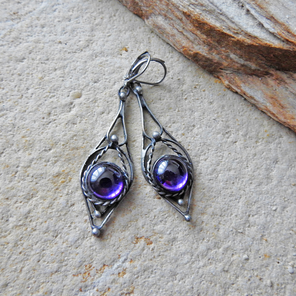 Cínované náušnice s fialovým syntetickým zirkonem.