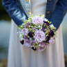 Svatební kytice v kombinaci fialových barev. Květiny jsou látkové a umělé. Kytici berte jako ukázku a inspiraci, ráda Vám uvážu podle Vašich představ.