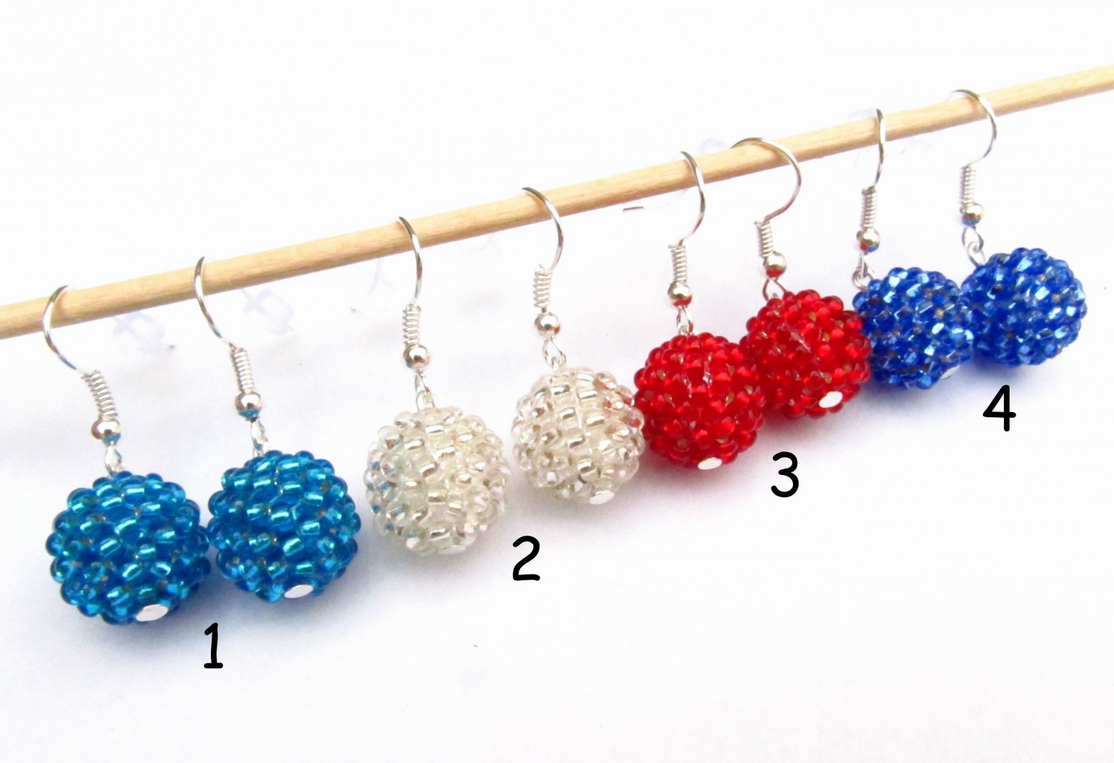 Náušnice z ručně obšívaných kuliček z rokajlu se stříbrným průtahem. (č. 2)