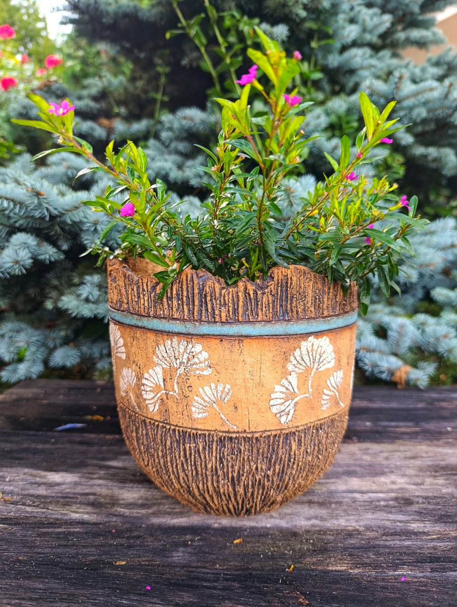 Keramický květináč výška cca 17 cm a průměr 18 cm.