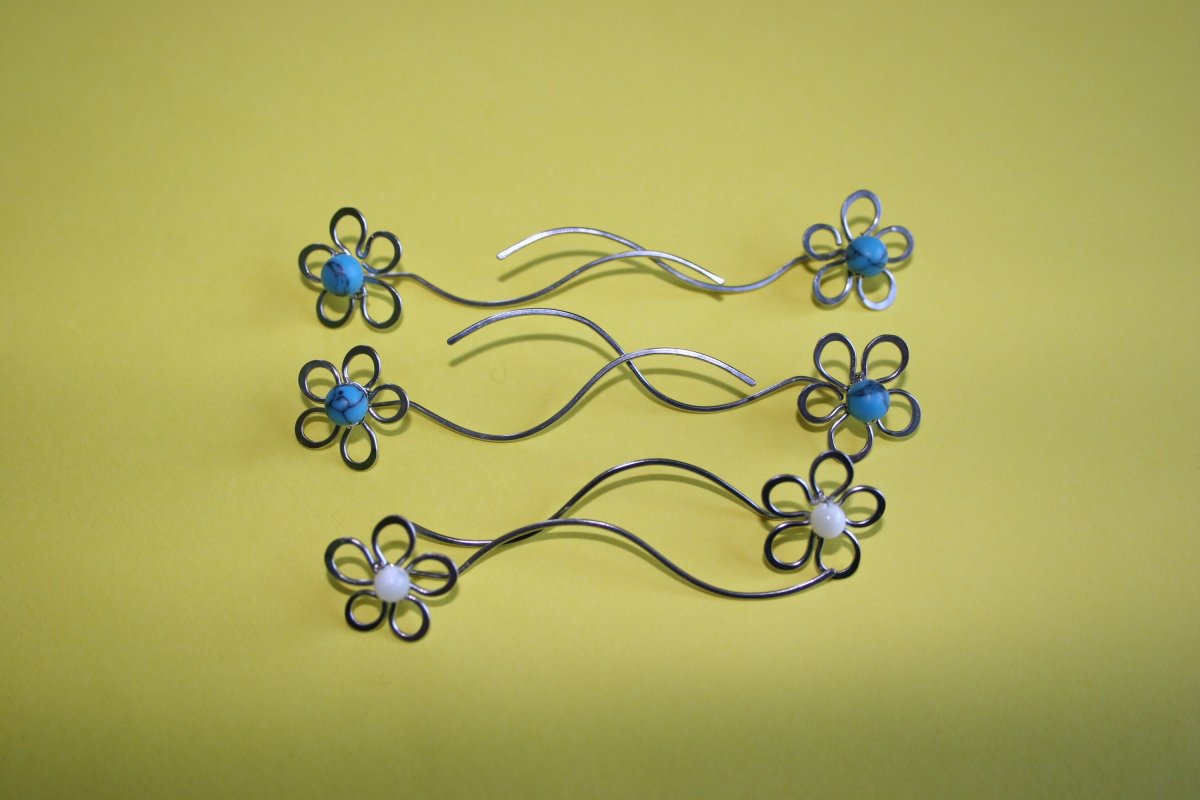 Květinkové náušnice s modrým korálkem tyrkenitu - originální,jednoduché a pohodové na nošení. Zarážky přidávám, ale nejsou vůbec potřeba, náušničky krásně drží.