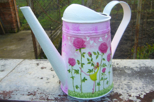 Konev výška 24cm objem 2,6l.Galvanizováno,zaručuje ochranu proti korozi.Barveno hrubou lazurovací barvou+ akrylovou barvou+lakováno,vše vodou ředitelné.Splňuje EN 71 pro nátěry dětských hraček.Konev je jak na dekoraci tak i k použití na zalévání květin.