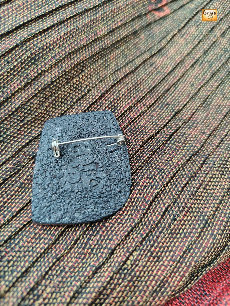 Rozměry autorské leštěné brože z polymerové hmoty jsou cca 35x45 mm.